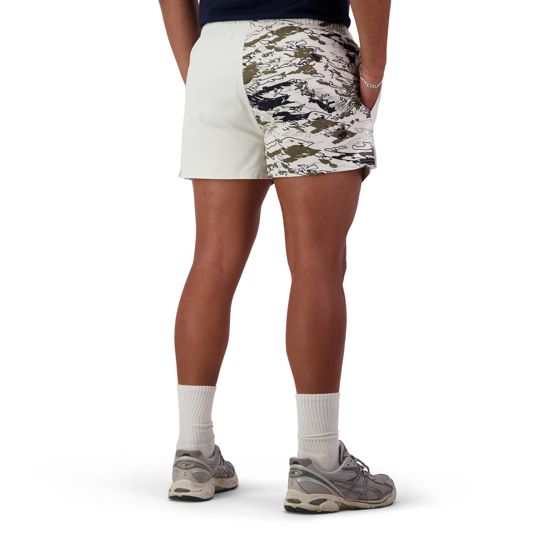 - Printed camo on left leg
